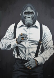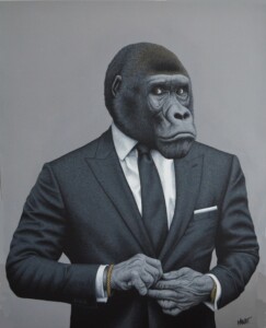 Artiste autodidacte, Manat veut la perfection dans le détail, il joue merveilleusement bien avec la texture des vêtements qui habillent singes et gorilles avec beaucoup de dérision.